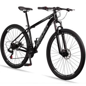 Bicicleta 29 Raider Z3X Pro 21V Freio a Disco e Suspensão Quadro Alumínio MTB - 19-Preto+Cinza