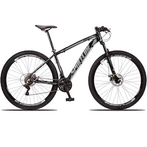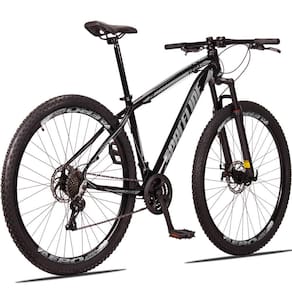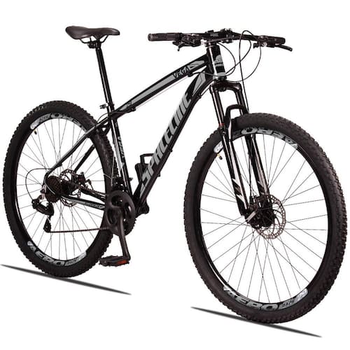 Com um quadro de Alumínio de ótima geometria para o MTB e um design exclusivo. Possui 21 combinações de marchas com trocadores rapidfire que facilitam as trocas entre catracas. Uma suspensão de amortecimento para absorção de impacto e freio a disco para melhor segurança do ciclista.
