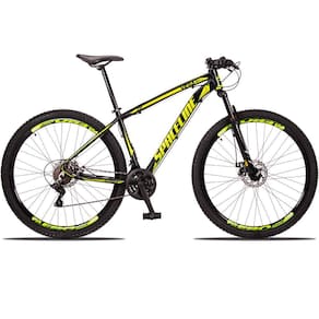Bicicleta 29 Spaceline Vega 21V Câmbio Shimano Freio a Disco e Suspensão - 21-Preto+Amarelo