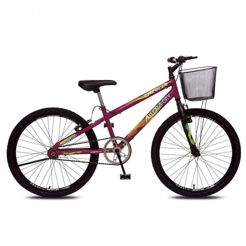 Bicicleta Allegra City Aro 24 Sem Marchas Freios V-brake E Cestão Colli Roxo Características: Marca: Colli Modelo: Allegra City Idade recomendada: a partir de 12 anos. Quadro: 13 Aro 24 Câmara de Ar Aro 24 Coroa 46D Cesto: Oval medida aço com hastes. Freio: V-brake nylon Garfo 24 Colli pintado Manopla diplomata Movimento direção comum com colar Pedivela monobloco 165x15mm Selim PVC Canote reto colli zincado Corrente grossa 1/2x1/8 Descanso lateral aro 24 Guidao downhill aço expandido 580mm com sup. soldado Macaneta de nylon 26 Movimento central 45mm com colar Pedal 1/2 Pneu Roda livre 1v 18d Conteúdo da Embalagem: Quadro e garfo com roda traseira, roda dianteira e guidão. Kit de acessórios: kit selim, canote, pedais e manual proprietário.