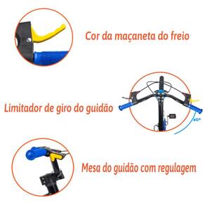 O limitador de giro evita que o guidão vire completamente, proporcionando mais segurança e preservando o freio.  Para facilitar o aprendizado e a identificação do freio traseiro, a maçaneta amarela ganha destaque e indica o acionamento ideal na hora da frenagem.