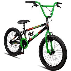A Bicicleta BMX FLAY Aro 20 é ideal para crianças a partir de 6 anos que adoram aventura e diversão ao ar livre Com visual radical e estrutura reforçada, ela garante segurança e estilo nas manobras e passeios. Perfeita para criar memórias incríveis na infância com muito movimento e liberdade Quadro em Aço carbono Guidão em Aço carbono Garfo em Aço carbono Aro Aero em alumínio com parede dupla Freios V-Brake - Nylon Manete em Nylon Mesinha em Alumínio Caixa de Direção Standard Movimento Central 45mm Pedivela Monobloco Coroa 36 Dentes Catraca 18 Dentes Cubos 3/8 36 Furos Pedal simples em Nylon Rosca Fina 1/2 Canote em aço 22.2mm Selim P.U. Manopla em borracha Abraçadeira com porca - : 3 meses - Necessita montagem não acompanha ferramentas / não acompanha manual - A montagem é responsabilidade do cliente deve ser feita em oficina especializada - Peças podem ser diferentes da imagem devido lote de fabricação - A cor do produto pode ser ligeiramente diferente, devido variações de telas. - Peso Suportado: 80kg - Idade Recomendada: A partir de 6 Anos ou 120cm à 145cm de altura - Não indicado para manobras radicais Marca: Não Informado