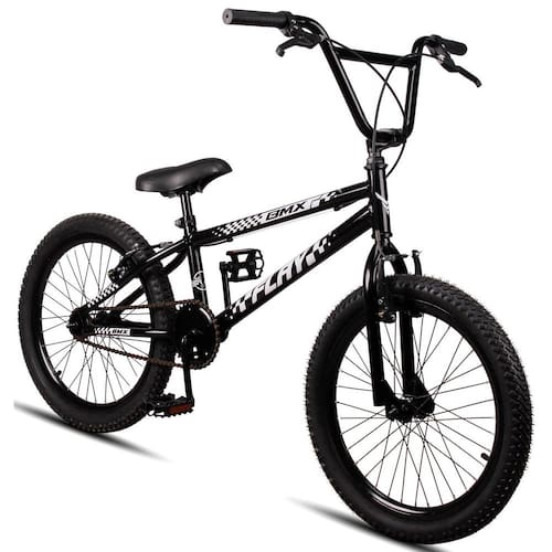 A Bicicleta BMX FLAY Aro 20 é ideal para crianças a partir de 6 anos que adoram aventura e diversão ao ar livre Com visual radical e estrutura reforçada, ela garante segurança e estilo nas manobras e passeios. Perfeita para criar memórias incríveis na infância com muito movimento e liberdade Quadro em Aço carbono Guidão em Aço carbono Garfo em Aço carbono Aro Aero em alumínio com parede dupla Freios V-Brake - Nylon Manete em Nylon Mesinha em Alumínio Caixa de Direção Standard Movimento Central 45mm Pedivela Monobloco Coroa 36 Dentes Catraca 18 Dentes Cubos 3/8 36 Furos Pedal simples em Nylon Rosca Fina 1/2 Canote em aço 22.2mm Selim P.U. Manopla em borracha Abraçadeira com porca - : 3 meses - Necessita montagem não acompanha ferramentas / não acompanha manual - A montagem é responsabilidade do cliente deve ser feita em oficina especializada - Peças podem ser diferentes da imagem devido lote de fabricação - A cor do produto pode ser ligeiramente diferente, devido variações de telas. - Peso Suportado: 80kg - Idade Recomendada: A partir de 6 Anos ou 120cm à 145cm de altura - Não indicado para manobras radicais Marca: Não Informado
