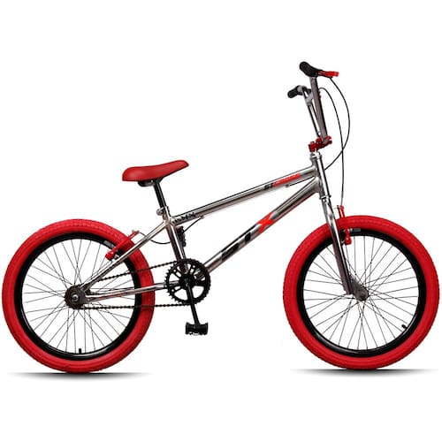 Bicicleta Aro 20 BMX STX Cromada Pneu Vermelho Freio V-Brake Edição Especial