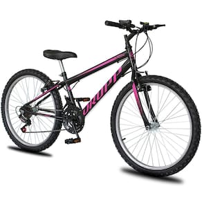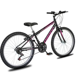 Bicicleta Aro 24 Dropp Sport Infantil Adulto18 vel marchas Freio V-Brake - Único-Preto+rosa