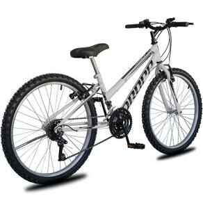 Aro: 24 | Tipo de Freio: v-brake | Importante: Bicicleta para passeios, não indicada para manobras radicais e trilhas pesadas. | Informação Relevante: Pode haver alguma diferença de tonalidade entre a imagem e o produto real; Algumas peças podem chegar diferente da imagem dependendo do lote do produto, sempre mantendo o padrão de qualidade; | Material do Quadro: Aço Carbono | Material do Canote: Aço | Montagem do Equipamento: A montagem é de responsabilidade do cliente, sugerimos que seja efetuada por uma oficina especializada. | Marchas: 18 | Garantia do Fabricante: 90 dias. A garantia será validada para as bicicletas montadas e revisadas por uma oficina especializada e é referente apenas ao primeiro proprietário | Indicado para: Passeio | Modalidade: Passeio | Marca e Modelo do Sistema de Câmbio: Importado Cor: Branco+Preto