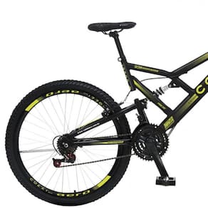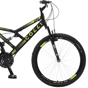 Bicicleta Colli Dupla Suspensão, Aro 26, Aro Comum Preto, 36 Raias, Trocador Na Luva, 21 Marchas, Freio V-Brake Dianteiro e Traseiro, Suporte De Guidão Down Hill Preto Expandido.