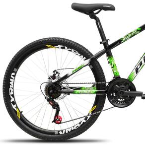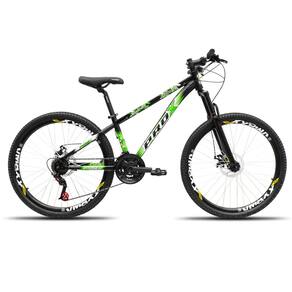 Bicicleta aro 26 Freeride PRO X Mandrake Hiten 21 Velocidades Freio a Disco Aros Vmaxx Preto Adesivo Verde e Branco