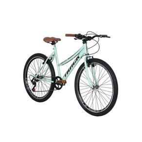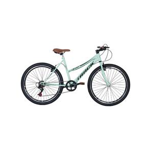 A Bicicleta Aro 26 Track Serena MT Verde Menta é perfeita para quem busca praticidade e estilo no dia a dia. Com quadro tamanho 18 em aço resistente e garfo também em aço, oferece firmeza e durabilidade. Equipada com câmbio Track Index EZ Fire de 7 marchas, adapta-se a diferentes percursos, garantindo uma pedalada mais leve e eficiente. Os freios V-Brake em nylon proporcionam segurança nas frenagens, enquanto os pneus aro 26 com cravo asseguram melhor aderência em terrenos urbanos ou levemente irregulares. O selim conforto, o guidão em aço e as manoplas plásticas ergonômicas tornam o uso agradável. Suporta até 90kg e acompanha kit com pedais, banco e canote.