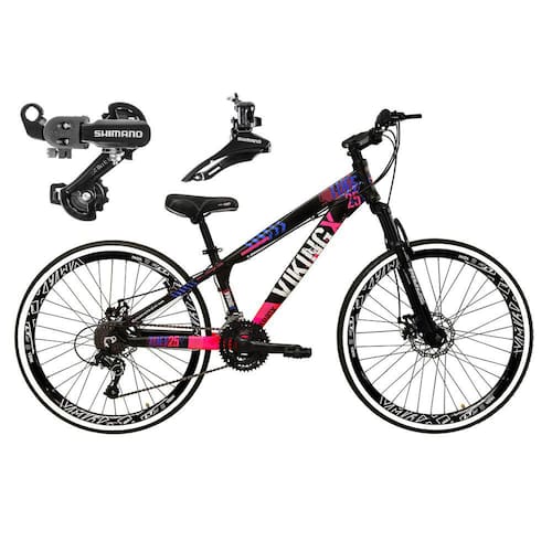 Bicicleta Aro 26 Vikingx Tuff 21v Alumínio Câmbio Shimano Freio a Disco Aros Vmaxx Preto - Preto\Rosa X25
