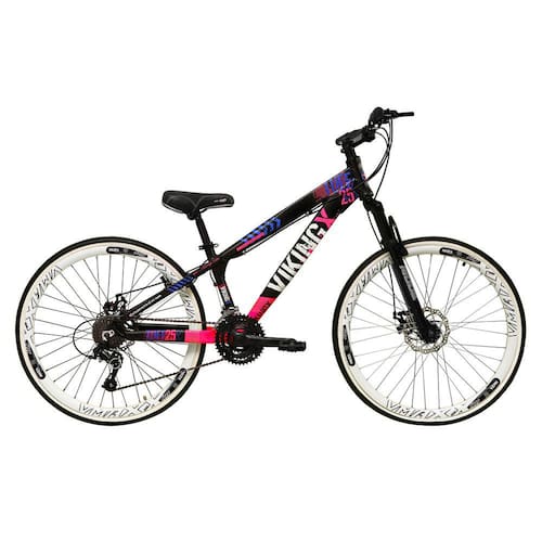 Bicicleta Aro 26 Vikingx Tuff 21v Alumínio Freio a Disco Aros Vmaxx Branco - Preto\Rosa X25