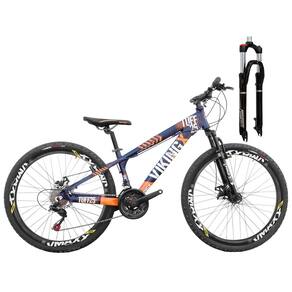 Bicicleta Aro 26 VikingX Tuff25 21v Freio Mecânico e Trava COMPONENTES DA BIKE - Quadro: Alumínio Viking Tuff X 25 - Suspensão de 100mm com Trava no Ombro - Aros Vzan Vmaxx SL - Raios Zincados Pretos - Pneus Aro 26 Com Arame - Camara de ar 26 - Jogo Direção Ahead Set Rolamentado - Suporte Do guidão de Alumínio - Guidão em Alumínio - Canote do Selim em Alumínio - Pedal em Plataforma Comum - Arruela Calço para Ahead Set (3 unidades) - Manopla Mtb Comum Confort - Abraçadeira do Selim com Blocagem - Selim - Disco de Freio De 160mm Parafusos - Freio a Disco Mecânicos com Pastilha RELAÇÃO (TRANSMISSÃO DA BIKE) - Roda Livre 7v - Roda Tripla De Aço - Trocador Semi Automático Rapid Fire de 7V - Cambio Dianteiro Indexado 3V Importado - Cambio Traseiro Indexado 7V Importado - Cubos Sistema Roda Livre esferado - Corrente Indexada 7V - Jogo de Centro Blindado - Cubos Esferados