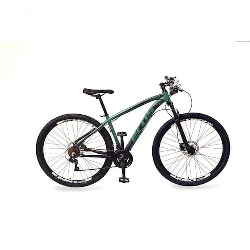 Suspensão: Dianteira | Modalidade: Mountain Bike | Marchas: 24 | Aro: 29 Cor: Verde Exercito e Preto/Preto
