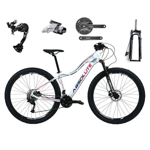Bicicleta Aro 29 Absolute Hera Feminina Alumínio Câmbios Shimano Alívio e Altus 27v Freios Hidráulicos Garfo Com Trava no Guidão - Branco - TAMANHO 15