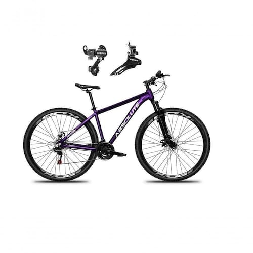 Bicicleta Aro 29 Absolute Nero 5 Alumínio 21v Câmbios Shimano Freio A Disco - Roxo Tam.19 Bike aro 29, com quadro Absolute Nero 5, nova na caixa a , produto com ótima qualidade e acabamento, possui Freios a disco, Câmbio dianteiro e traseiro Shimano, 21 marchas com sistema de alavancas rapid fire que a cada clique uma marcha é trocada, garfo com suspensão. Bicicleta pré montada, vai precisar apenas fixar a roda dianteira, guidão, selim e pedais. Quadro 29 Absolute Nero 5 em Alumínio 6061 / Garfo 29 suspensão curso 60mm / Suporte do guidão em alumínio preto / Guidão 31.8mm em alumínio preto / Canote do selim 27.2 em alumínio preto s/carrinho / Selim Sport preto Abraçadeira do Selim alumínio Preto / Aros Aero Parede dupla reforçado / Raios Pretos / Cubos Pretos aço / Pneus 29 com cravo / Movimento central selado rolamentado / Freios a disco Mecânicos com discos inox 160mm / Alavancas Semi-automáticas Rapid Fire / Câmbio Traseiro shimano tz / Câmbio Dianteiro shimano tz / Corrente Index / Pedivela Aço Revestido / Pedal Plataforma Nylon preto / Roda Livre 7v index dourada. Recomendamos que seja feita uma revisão por um técnico após a recebimento do produto, para reajuste e regulagem, pois no transporte pode acontecer de alguma peça soltar ou desregular. Fotos meramente ilustrativas. ;