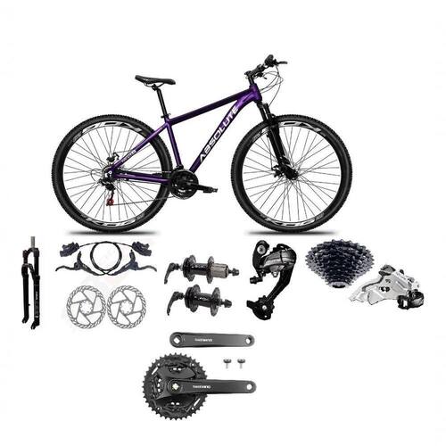 Bicicleta Aro 29 Absolute Nero 5 Câmbios 27v Shimano Altus Freios Hidráulicos - Roxo Tam.19 Bike aro 29, com quadro Absolute Nero 5, nova na caixa a , produto com ótima qualidade e acabamento, possui 27 marchas com sistema de alavancas rapid fire que a cada clique uma marcha é trocada, câmbio dianteiro SHIMANTO ALTUS e traseiro SHIMANO ALTUS (M370 OU M2000, DEPENDERÁ DA DISOPONIBILIDADE NO ESTOQUE) , garfo com suspensão e sistema de trava para melhor performance, sistema de freio a disco hidráulico, pneus com cravo baixo para uso em terra e asfalto. Bicicleta pré montada, vai precisar apenas fixar a roda dianteira, guidão, selim e pedais. Segue abaixo características da bike: Quadro 29 Absolute Nero 5 em Alumínio / Garfo 29 suspensão ABSOLUTE com Trava no Ombro Suporte do guidão em alumínio preto / Guidão 31.8mm em alumínio preto / Canote do selim 27.2 em alumínio preto Com carrinho / Selim Sport Preto / Abraçadeira do Selim alumínio Preto / Aros Aero Parede dupla reforçado / Raios Pretos / Cubos em Alumínio K7 Pretos com blocagens / Pneus 29 com cravo / Movimento central selado rolamentado / Freios a disco Hidráulicos om discos inox 160mm / Alavancas Semi-automáticas Rapid Fire GTA ou SUNRUN / Câmbio Traseiro SHIMANO ALTUS 27V (M370 OU M2000, DEPENDERÁ DA DISOPONIBILIDADE NO ESTOQUE) / Câmbio Dianteiro SHIMANO ALTUS ;/ Corrente Index DTO / Pedivela SHIMANO Mt101 ou M371 27v(DEPENDERÁ DA DISOPONIBILIDADE NO ESTOQUE) / Pedal Plataforma Nylon preto / Cassete k7 GTA 11/32 cromada.