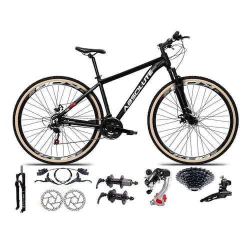 Bike aro 29, com quadro Absolute Nero 5, nova na caixa a , produto com ótima qualidade e acabamento, possui 24 marchas com sistema de alavancas rapid fire que a cada clique uma marcha é trocada, câmbio dianteiro e traseiro shimano, garfo com suspensão com regulagem e trava para melhor performance, sistema de freio a disco hidráulico, pneus com cravo baixo para uso em terra e asfalto. Bicicleta pré montada, vai precisar apenas fixar a roda dianteira, guidão, selim e pedais. Segue abaixo características da bike: Quadro 29 Absolute Nero 5 em Alumínio / Garfo 29 suspensão 100mm com Regulagem e Trava / Suporte do guidão em alumínio preto / Guidão em alumínio preto / Canote do selim em alumínio preto Com carrinho / Selim Sport Preto / Abraçadeira do Selim alumínio Preto / Aros Aero Parede dupla reforçado / Raios Pretos / Cubos Pretos em alumínio K7 com blocagens / Pneus 29 com Cravo / Movimento central selado rolamentado / Freios a disco Hidráulicos com discos inox 160mm / Alavancas Semi-automáticas Rapid Fire / Câmbio Traseiro shimano tourney ou tz preto / Câmbio Dianteiro shimano tourney ou tz preto / Corrente Index / Pedivela Triplo em alumínio / Pedal Plataforma Nylon preto / Cassete Gta 8v (de encaixe).