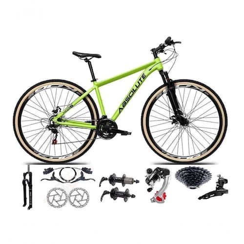 Bicicleta Aro 29 Absolute Nero 5 Câmbios Shimano 24v K7 Freios Hidráulicos Garfo Trava Com Pneu Faixa - Verde