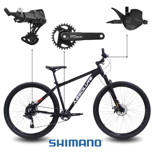 Bicicleta Aro 29 Absolute Nero 5 Kit Shimano CUES 1x9 e Freios Hidráulicos MT200