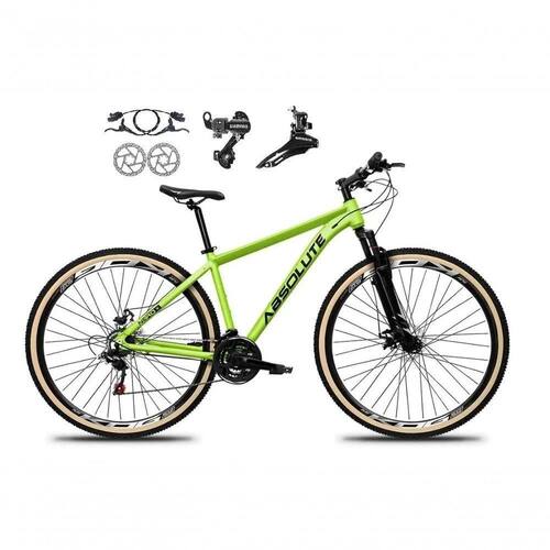 Bicicleta Aro 29 Absolute Nero 5 Shimano Freios Hidráulicos 24v Garfo Suspensão Pneu Faixa - Verde Bike aro 29 Absolute Nero 5 em alumínio, nova na caixa a , produto com ótima qualidade e acabamento, possui 24 marchas com câmbio dianteiro e traseiro Shimano e sistema de alavancas rapid fire que a cada clique uma marcha é trocada, garfo com suspensão, sistema de freio a disco hidráulico(óleo). Quadro com tubo rebaixado para facilitar subir e descer da bike. Bicicleta pré montada, vai precisar apenas fixar a roda dianteira, guidão, selim e pedais. Segue abaixo características da bike: Quadro 29 Absolute Nero 5 em alumínio 6061Garfo 29 suspensão curso 60mm / Suporte do guidão em alumínio preto / Guidão em alumínio preto / Canote do selim s/carrinho / Selim Sport preto / Abraçadeira do Selim alumínio Preto / Aros Aero Parede dupla reforçado / Raios Pretos / Cubos Pretos aço / Pneus 29 cravudo / Movimento central selado rolamentado /Freios a disco Hidráulicos(a óleo) com discos inox 160mm / Alavancas Semi-automáticas Rapid Fire / Câmbio Traseiro shimano tz / Câmbio Dianteiro shimano tz / Corrente Index / Pedivela Aço Revestido / Pedal Plataforma Nylon preto / Roda Livre 8v index dourada (rosca). ;