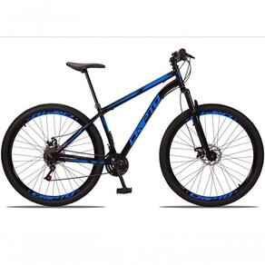 Suspensão: Dianteira | Modalidade: Mountain Bike | Aro: 29 | Marchas: 21 Cor: Preto/Azul