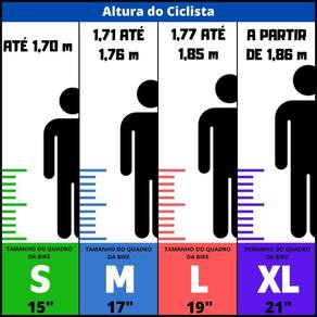Altura do ciclista: 1,85 até 1,90m ou mais Tamanho de quadro 21"