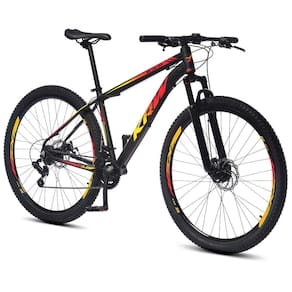 Bicicleta aro 29 Alumínio KRW Shimano 24 Velocidades Marchas Freio a Disco Suspensão dianteira K11 - 21-Preto/Amarelo e Vermelho