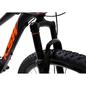 Marca: KSW | Modelo: XLT 100 | Modalidade: Mountain Bike | suspensão: dianteira | Aro: 29 | Marchas: 21 | Cor: PRETO FOS -AD LARANJA