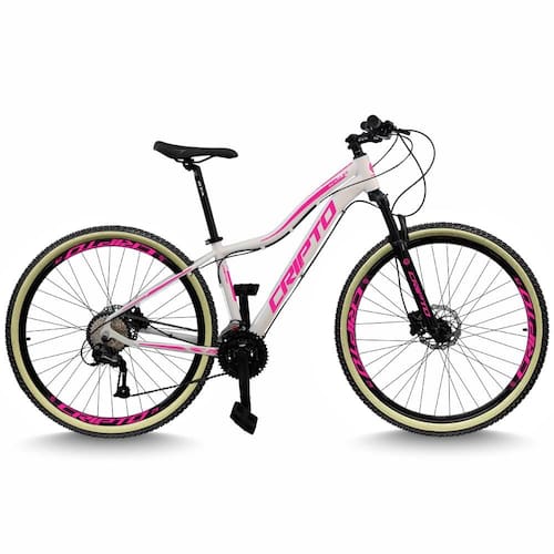 Bicicleta Aro 29 Cripto 24 Marchas Freio Disco c/Suspensão Pneu Bege - 17"-Branco/Rosa