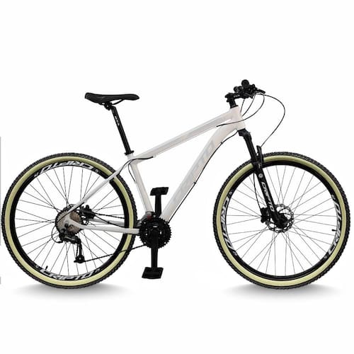Bicicleta Aro 29 Cripto 24 Marchas Freios Disco e Suspensão Pneu Bege - 15"-Branco/Prata