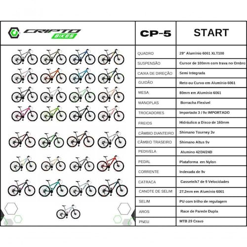 - A geometria do quadro (desenho) pode mudar conforme o tamanho escolhido alterando a inclinação do tubo superior quando quadro é 21 deixando-o mais reto.