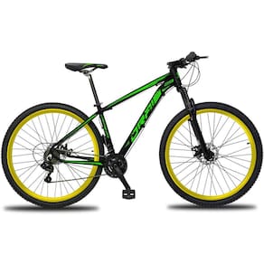 Bicicleta Aro 29 Drais Clean 24v Câmbios Shimano Freios a Disco Alumínio MTB - Cor: Verde+Amarelo | Tamanho: 21