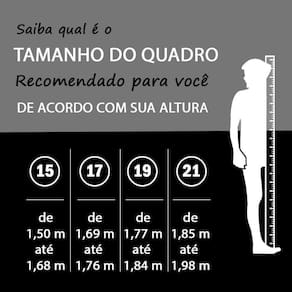- A geometria do quadro pode mudar conforme o tamanho escolhido alterando a inclinação do tubo superior quando quadro é 19 ou 21 deixando-o mais reto.