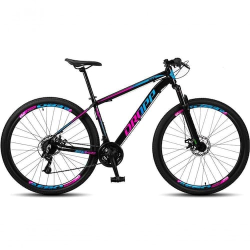 Aro: 29 | Marchas: 24 | Modalidade: Passeio | Suspensão: Dianteira | Material do Quadro: Alumínio | Modelo e Composição do Garfo: Garfo / Suspensão Aro 29 PRETO 100mm (Imp.) | Marca e Modelo do Sistema de Câmbio: Câmbio Dianteiro (IMP.) / Câmbio Traseiro Shimano / Trocador de Marchas Engate Rápido - 24V (IMP.) | Marca e Composição do Pedivela: Pedivela Aço 42/34/24 Dentes (Imp.) | Modelo e Composição do Freio: Freio a Disco 160mm Preto - MECÂNICO (Imp.) | Material da Roda: Aros Aero 36 Furos Folha Dupla Alumínio | Pneus: Pneu (Imp.) 29x2.10 | Marca e Composição dos Cubos: Cubos p/ Disco 36f rosca Preto com blocagens (Imp.) | Modelo e Composição do Guidão: Guidão 680mm Aço | Marca e Composição do Selim: Selim Sport | Material do Canote: 27.2 | Importante: Bicicleta para passeios e trilhas leves, não indicada para manobras radicais e trilhas pesadas Cor: Azul+Rosa