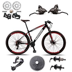 A bicicleta Ravok foi desenvolvida para quem quer realizar passeios e pegar trilhas. Com seu quadro em alumínio 6061, fornece segurança e leveza no seu pedal.O modelo possui 27 velocidades, freio a disco mecânico que proporciona segurança nas frenagens, cubo cassete em ALUMINIO e suspensão dianteira para um passeio confortável em diversos tipos de terrenos.Disponível em diversas cores que garante um estilo próprio para você.Veja abaixo a descrição detalhada dos componentes:QUADRO: Alumínio 6061.SUSPENSÃO: Aro 29ALAVANCA/TROCADOR: rápid fire- 27vCÂMBIO TRASEIRO: 9vCÂMBIO DIANTEIRO: 3vCASSETE: 9V indexPEDIVELA: Triplo em aço revestido 24/34/42 indexCORRENTE: index 9vFREIOS: Disco mecânicoCUBOS: 36 Furos CASSETE em ALUMÍNIO esferados com brocagemAROS: Aero em alumínio parede dupla 36fPNEUS: Aro 29 x 2,10 MTB cravo baixoCÂMARA DE AR: 29 x 1.95 bico grossoMOVIMENTO CENTRAL: Roller 122.5 Preto SeladoMOVIMENTO DE DIREÇÃO: Aheadset Preto semi integradoESPAÇADOR: Aheadset Em AlumínioGUIDÃO: expandido em alumínio - PretoSUPORTE DE GUIDÃO: Preto em Alumínio 31,8mmCANOTE DE SELIM: Preto em Alumínio 27,2x350mmBANCO / SELIM: Sport PU MTBABRAÇADEIRA: 31,8mm em Alumínio PretoPEDAL: Nylon plataforma pretoOBS: IMAGEM MERAMENTE ILUSTRATIVA, BIKE VAI CONFORME DESCRIÇÃORECOMENDAÇÃO DE TAMANHOSAltura do ciclista: 1,65 até 1,71m Tamanho de quadro 15Altura do ciclista: 1,72 até 1,76m Tamanho de quadro 17Altura do ciclista: 1,77 até 1,82m Tamanho de quadro 19Altura do ciclista: 1,83 até 1,90m ou mais Tamanho de quadro 21MONTAGEM- A bicicleta é montada, porém, para acomodação na embalagem e transporte, algumas peças são enviadas desmontadas.- A instalação é de responsabilidade do consumidor, orientamos que seja efetuada por mão de obra especializada.- Por motivo de transporte e manuseio, pode haver a necessidade de efetuar uma revisão (câmbios, freios) ao receber o produto.GARANTIA - Fábrica / 3 MesesNÃO COBRE DEFEITOS POR MAU USO OU PELA MONTAGEM / REVISÃO INADEQUADA DO PRODUTO.- A garantia será validada para as bicicletas montadas e revisadas por uma oficina especializada e é referente apenas ao primeiro proprietário.- A garantia não se aplica para os itens de desgaste natural tais como: Pneu, câmaras, cabos, pastilhas de freio, centragem de aros, pintura do quadro, componentes da transmissão (corrente, engrenagens do pedivela, engrenagens do cassete ou roda livre)..OUTRAS OBSERVAÇÕES:- As fotos do anúncio são feitas com quadros do tamanho 17\'\'.- A geometria do quadro (desenho) pode mudar conforme o tamanho escolhido alterando a inclinação do tubo superior.- Pode haver alguma diferença de tonalidade entre a imagem e o produto real, por conta do tratamento de imagens e a calibração de cores da sua tela.- Dependendo o lote do produto, algumas peças podem ter cores diferentes da imagem.