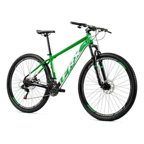 Descrições Marca: frx horizon Aro: aero 29 alumínio - parede dupla Quadro: alumínio Cubos: traseiro e dianteiro36f sem blocagem Raio: 288 Câmera de ar: 29 importada Pneu: 29x1.95 preto importado Selim: mtb importado Canote: 27,2 alumínio Abraçadeira: alumínio com blocagem Mov. Central importado Mov. Direção: ahead set importado Pedivela: engrenagem tripla encapada preta Alavanca: eze fire 8v importada Suporte guidão: alumínio ahead set preto Guidão: curvo expandido aço preto Roda livre: 8v index Câmbios: index dianteiro 31.8 preto / traseiro 7/8v Corrente: index Pedal: 9/16 plataforma de nylon importado Garfo suspensão: 29 over aço preto Freio a disco: dianteiro e traseiro mecânico