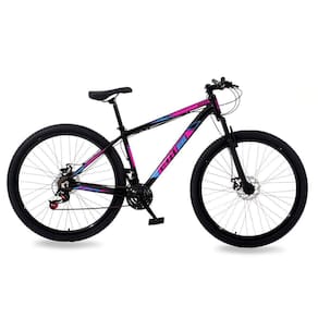 Com pé de apoio: Não | Com impacto positivo: Sim | Peso máximo suportado: 120 | Idade: Adultos | Câmbios Traseiros: 7vl | Aro: 29 | Marchas: 21 | Com cesto: Não | Quantidade de Velocidades: 21 | Material do quadro: Alumínio | É dobrável: Não | Linha: MTB | Modelo: 21vl Moutain bike freio a disco - Rocker Cor: Preto/Rosa Azul
