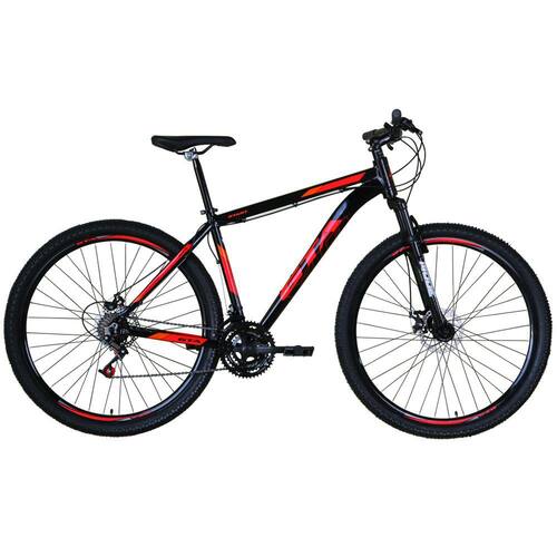 Bike aro 29 em alumínio, nova na caixa a pronta entrega, produto com ótima qualidade e acabamento, cabeamento interno, possui 21 marchas com sistema de alavancas rapid fire que a cada clique uma marcha é trocada, garfo com suspensão, sistema de freio a disco mecânico. Bicicleta pré montada, vai precisar apenas fixar a roda dianteira, guidão, selim e pedais. Segue abaixo características da bike:Quadro Gta Start em Alumínio 6061Garfo 29 suspensão curso 60mmSuporte do guidão em alumínio pretoGuidão 31.8mm em alumínio pretoCanote do selim 27.2Selim Sport pretoAbraçadeira do Selim alumínio PretoAros Aero Parede dupla reforçadoRaios PretosCubos Pretos com blocagensPneus 29 CravudinhosMovimento central selado rolamentadoFreios a disco Mecânicos com discos inox 160mmAlavancas Semi-automáticas Rapid FireCâmbio Traseiro Index IportadosCâmbio Dianteiro ImportadoCorrente IndexPedivela Aço RevestidoPedal Plataforma Nylon pretoRoda Livre 7v index dourada(rosca)Recomendamos que seja feita uma revisão por um técnico após a recebimento do produto, para reajuste e regulagem, pois no transporte pode acontecer de alguma peça soltar ou desregularFotos meramente ilustrativas
