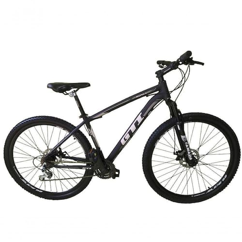 Bike aro 29, com quadro Gti Roma nova na caixa a pronta , produto com ótima qualidade e acabamento, possui 27 marchas com sistema de alavancas rapid fire que a cada clique uma marcha é trocada, garfo com suspensão, sistema de freio a disco mecânico. Bicicleta pré montada, vai precisar apenas fixar a roda dianteira, guidão, selim e pedais. Segue abaixo características da bike: