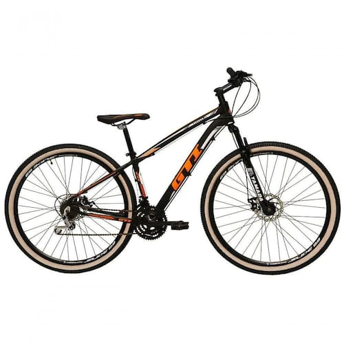 Bicicleta Aro 29 Gti Roma Alumínio 27v Freio Disco Mecânico Pneu Faixa Bege - Preto-laranja Tam.15
