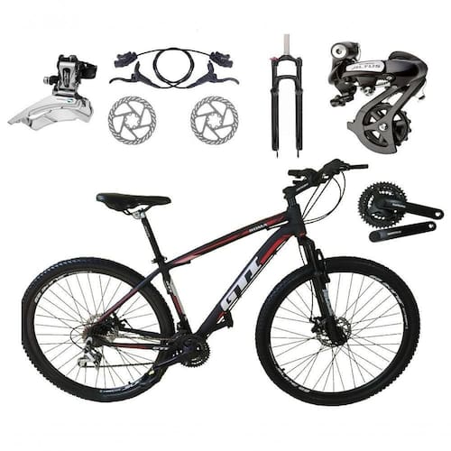 Bicicleta Aro 29 Gti Roma Câmbios Shimano Altus 24v K7 Freios Hidráulicos Garfo Trava - Preto/vermelho Tam.17