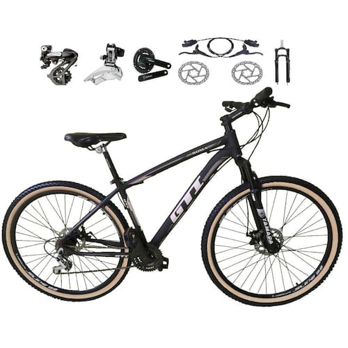 Bicicleta Gti Roma com Freio a disco hidráulico, garfo de suspensão com trava, quadro com ótimo acabamento e em alumínio, câmbios altus 24v. Quadro 29 Gti Roma alumínio 6061 / Garfo 29 suspensão 100mm com trava / Suporte do guidão em alumínio preto / Guidão 31.8mm em alumínio preto / Canote do selim 27.2 em alumínio preto Com Carrinho / Selim Sport Preto / Abraçadeira do Selim alumínio Preto / Aros Aero Parede dupla reforçado / Raios Pretos / Cubos Pretos alumínio com blocagens / Pneus 29 com cravo / Movimento central selado rolamentado / Freios a disco Hidráulicos Absolute com discos inox 160mm / Alavancas Semi-automáticas Rapid Fire Gta-sunrun / Câmbio Traseiro Shimano Altus M310 / Câmbio Dianteiro Shimano Altus M313 / Corrente Index Dto ou Paco / Pedivela Alumínio Shimano Tourney Ty301 Preto / Pedal Plataforma Nylon preto / Catraca K7 de 8v gta-sun (de encaixe) / Recomendamos que seja feita uma revisão por um técnico após a recebimento do produto, para reajuste e regulagem, pois no transporte pode acontecer de alguma peça soltar ou desregular / Fotos meramente ilustrativas