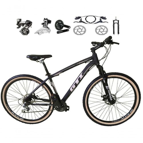 Bicicleta Gti Roma com Freio a disco hidráulico, garfo de suspensão com trava, quadro com ótimo acabamento e em alumínio, câmbios altus 24v.