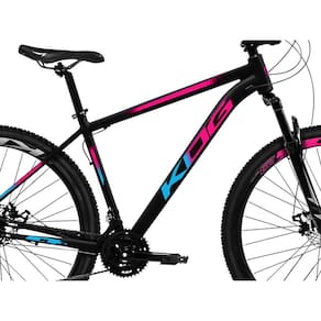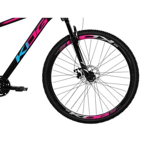 Bicicleta Aro 29 KOG 21 Marcha Cambio Shimano Freio a Disco - Cor: Preto+Rosa+Azul / Tamanho: 15