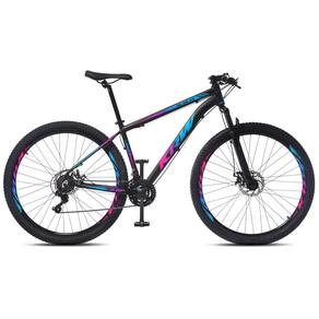 Bicicleta Aro 29 KRW Alumínio 21 Velocidades Freio a Disco X21 - 17-Preto/Rosa e Azul