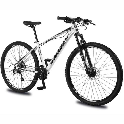 Bicicleta aro 29 KRW Alumínio 24 Vel Shimano Altus Freio Hidráulico Suspensão C/ Trava de ombro KR11 - 21-Branco/Preto