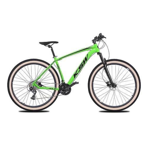 Bicicleta aro 29 KSW XLT 24 Marcha Shimano Freio Hidráulico - Cor:Verde Neon+Preto;Tamanho:21