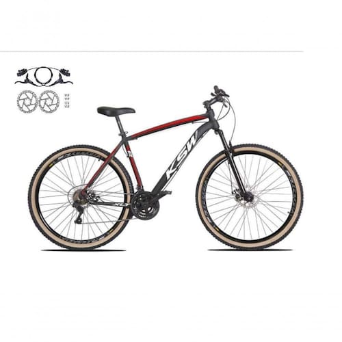 Bicicleta Aro 29 Ksw Xlt 24v Freios Disco Hidráulicos Garfo Suspensão Pneu Faixa - Preto/vermelho/amarelo Tam.15