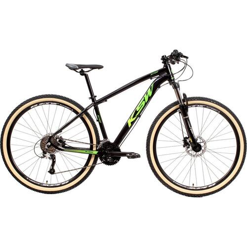 Bicicleta Aro 29 Ksw Xlt 24v K7 Câmbios Shimano Freio Hidráulico Garfo com Trava Pneu Faixa Bege - Preto\Verde - TAMANHO 21