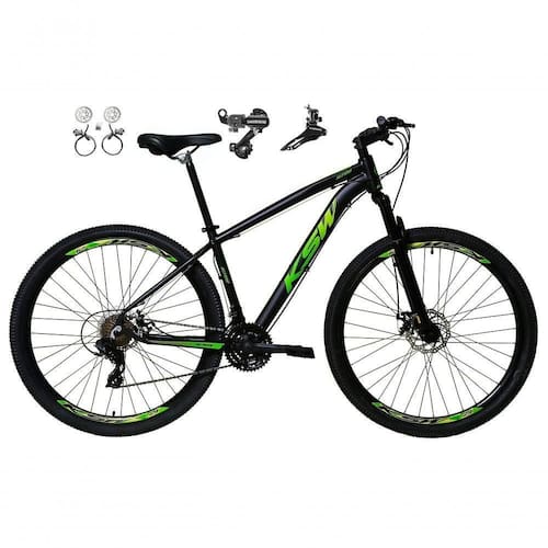 Bike aro 29, com quadro ksw xlt, nova na caixa a pronta , produto com ótima qualidade e acabamento, possui 24 marchas com sistema de alavancas rapid fire que a cada clique uma marcha é trocada, câmbio dianteiro e traseiro shimano, Catraca do tipo k7 de encaixe, garfo com suspensão e sistema de trava para melhor performance, sistema de freio a disco hidráulico, pneus com cravo baixo para uso em terra e asfalto. Bicicleta pré montada, vai precisar apenas fixar a roda dianteira, guidão, selim e pedais. Segue abaixo características da bike: